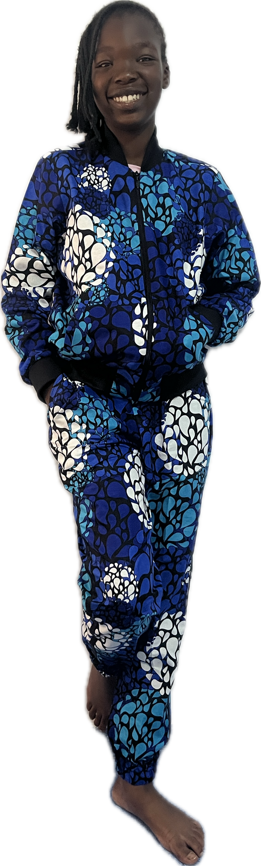 The Zuri Ankara African Print Bomber Jacket in Blue