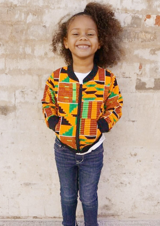 The Zareb Ankara African Print Bomber Jacket in Kente