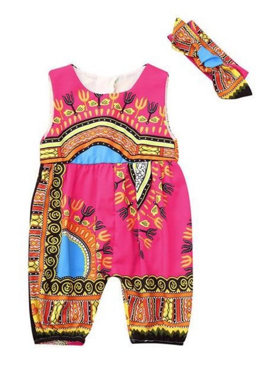 The Zola Yellow Elasticated African Print Ankara Skirt and Bow Headband Set for Baby and Girls